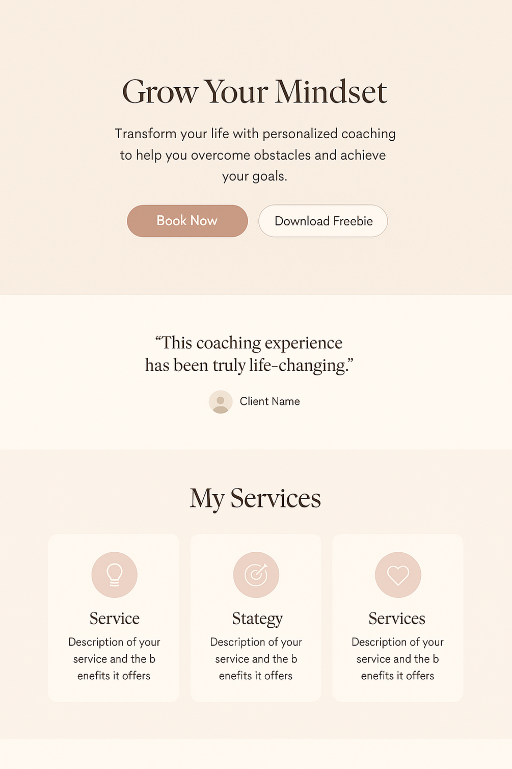 - Soft beige + pink palette for a polished feel